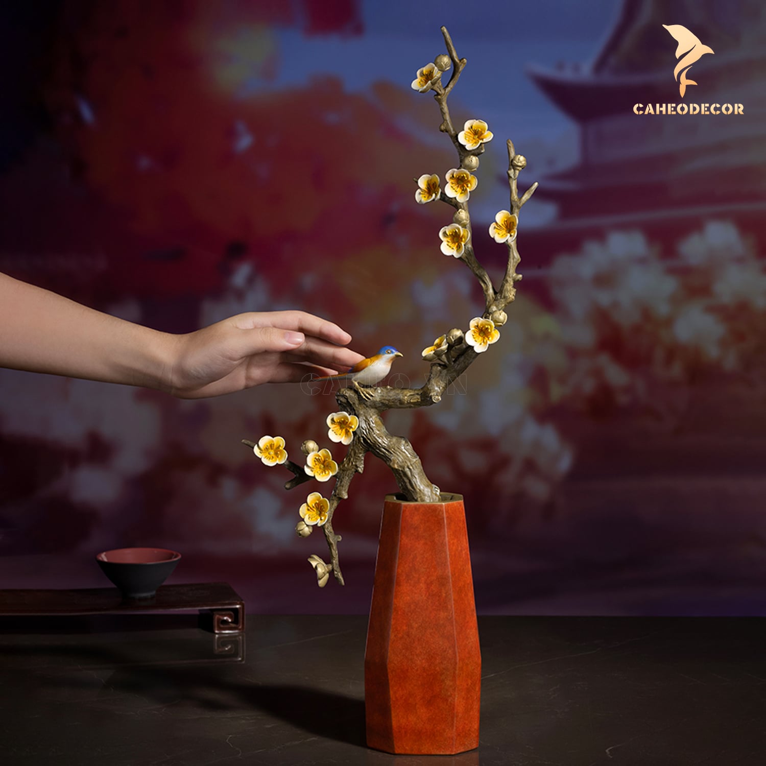 Cành hoa mận bằng đồng