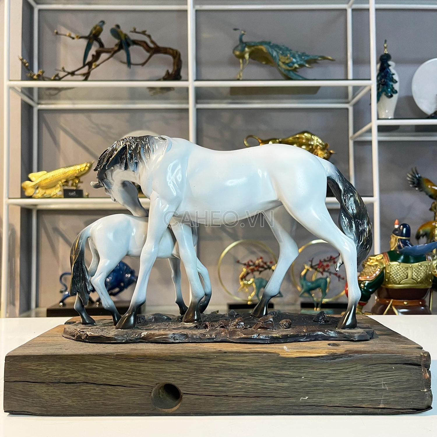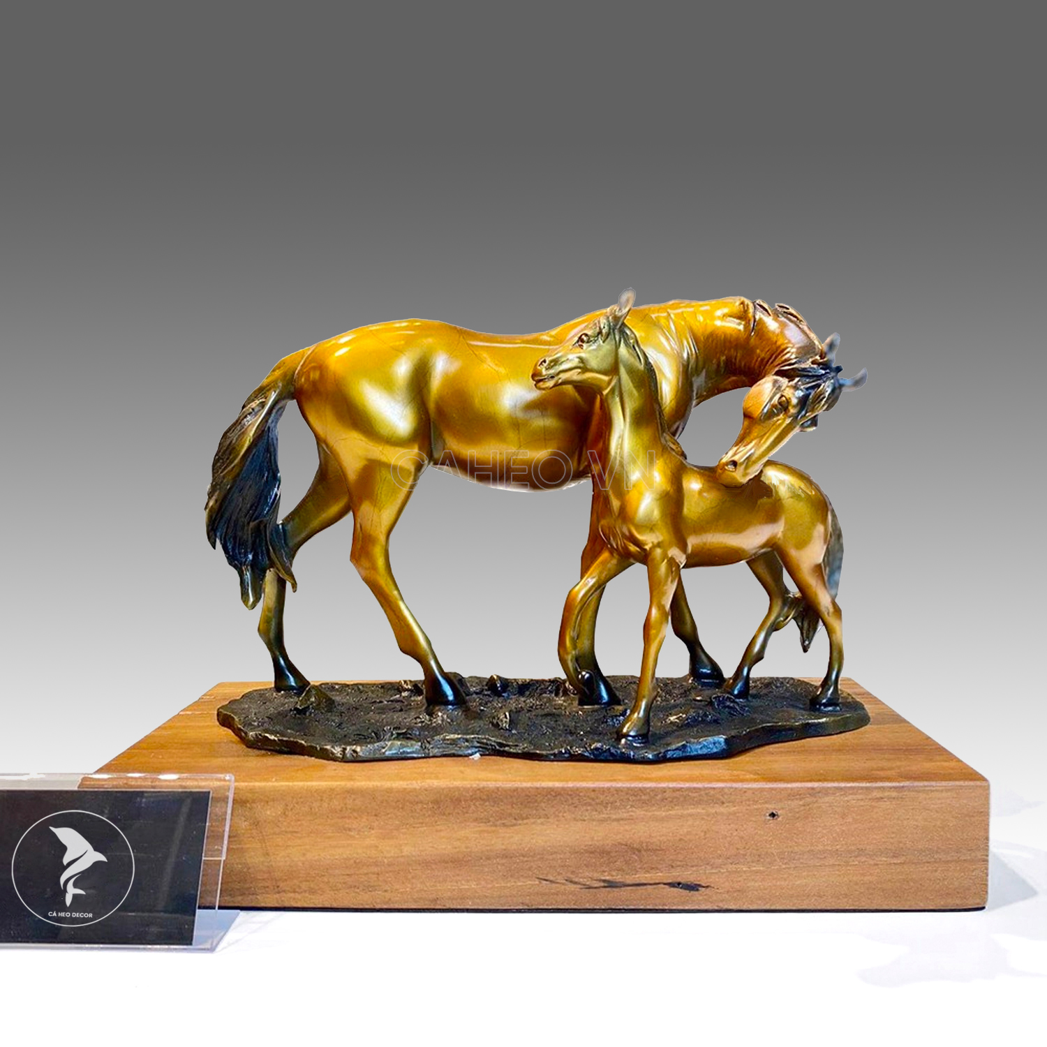 Bên cạnh đó, ngoài Tượng đôi ngựa mẹ con bằng đồng, Cá Heo Decor còn cung cấp rất nhiều vật phẩm trưng bày khác như: tượng ngựa hí bằng đồng – nhất mã