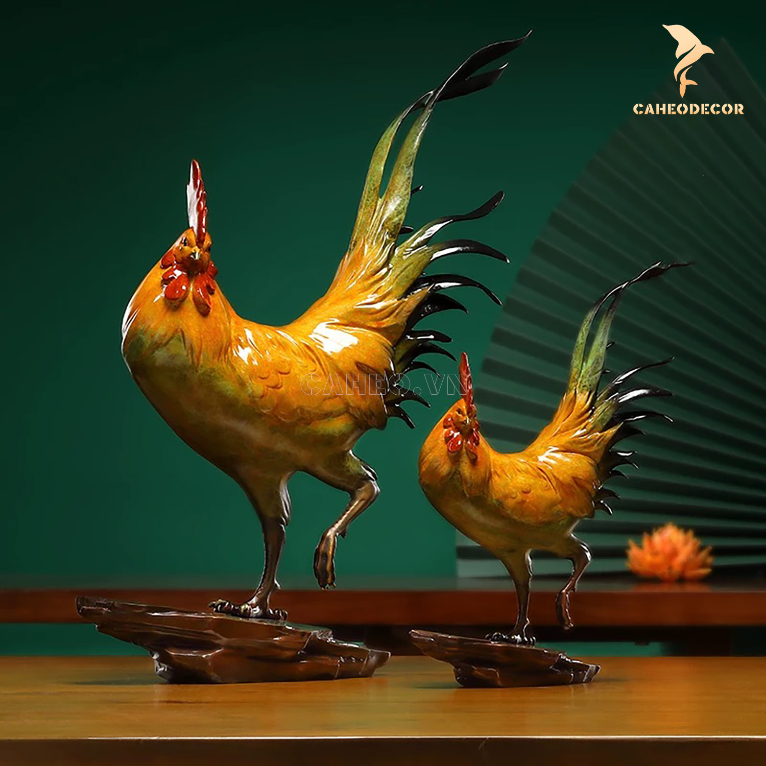 Tượng đồng Gà trống vàng may mắn