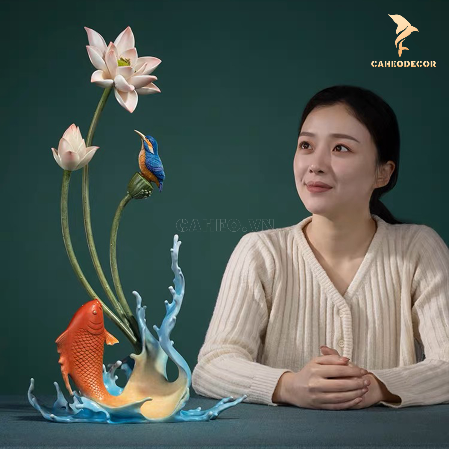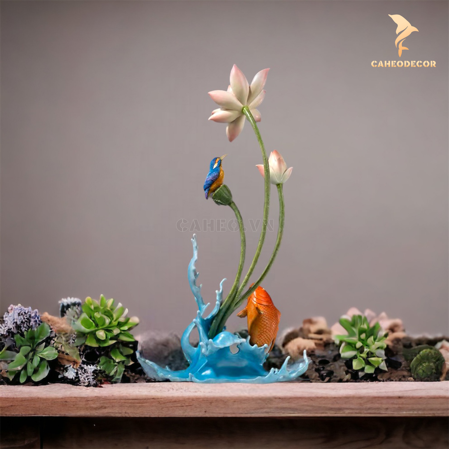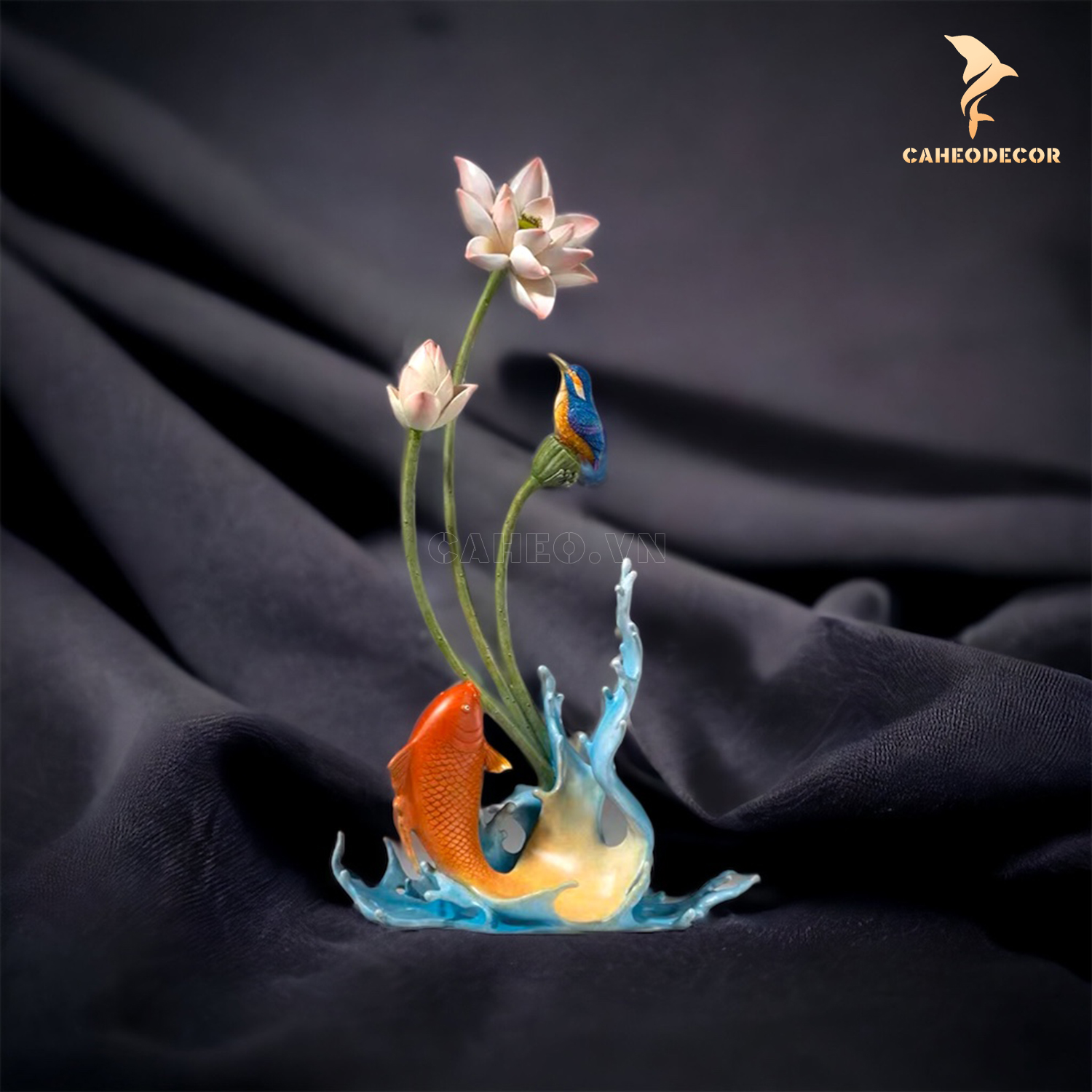 Tiểu cảnh cá chép hoa sen bằng đồng