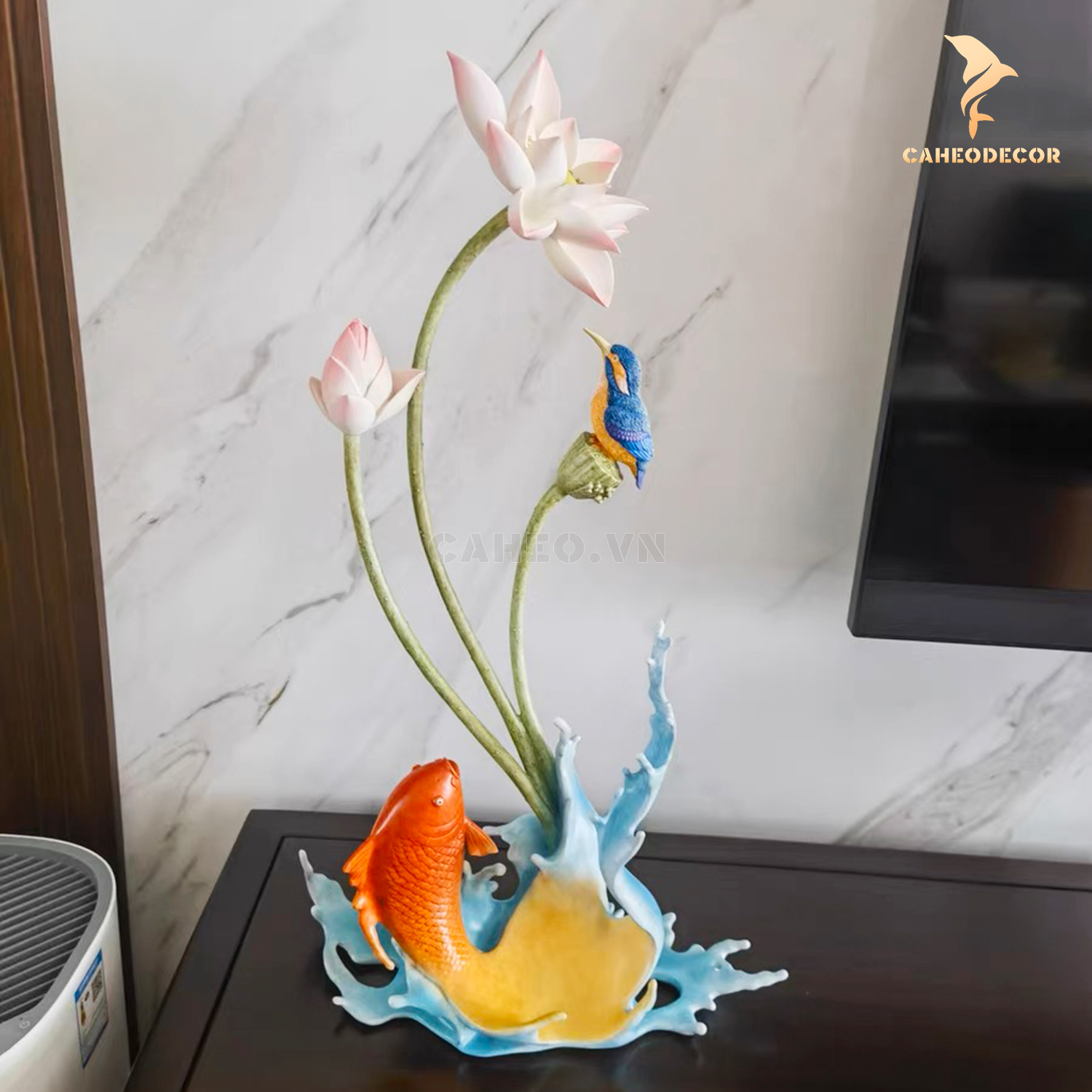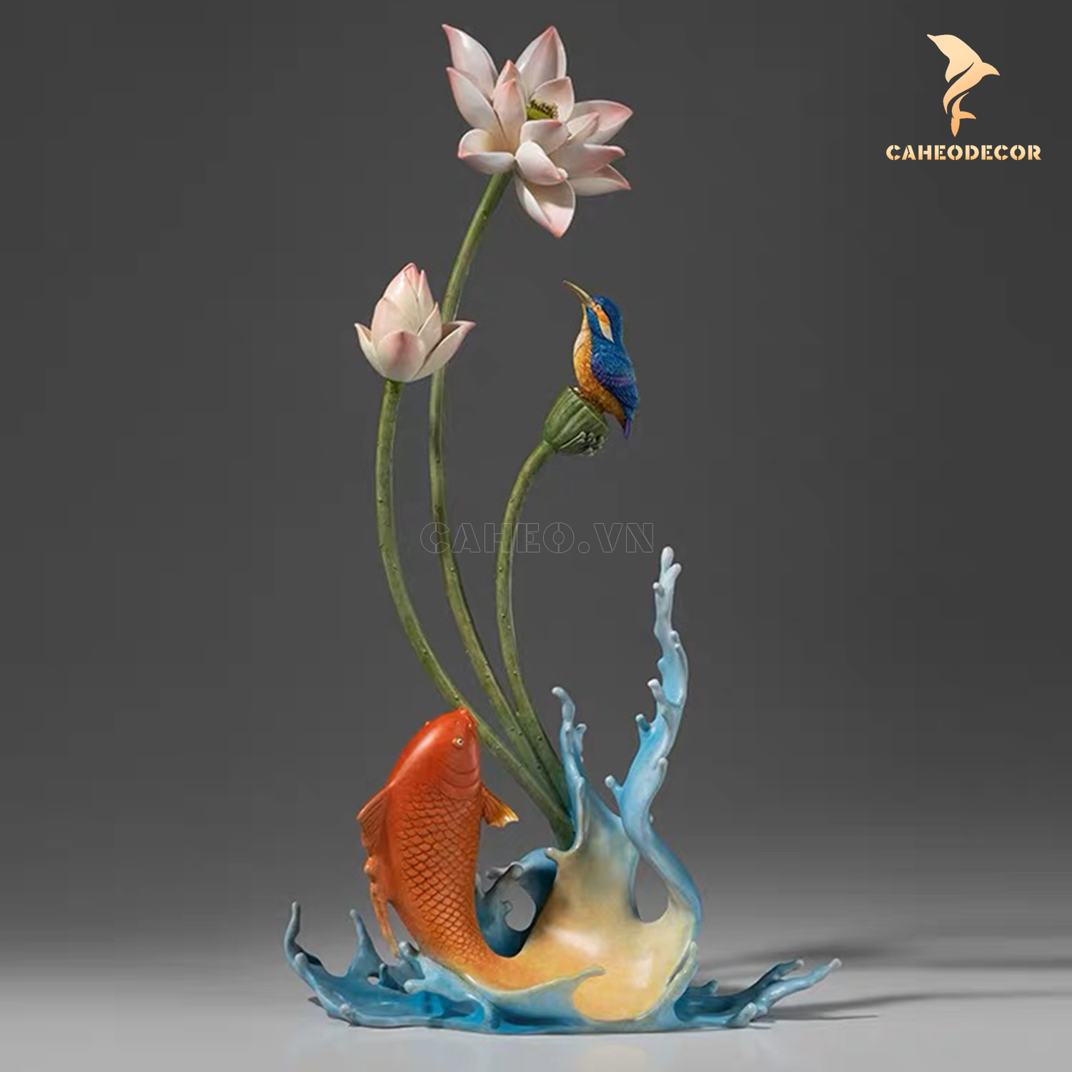 Tượng đồng cá chép hoa sen phong thuỷ